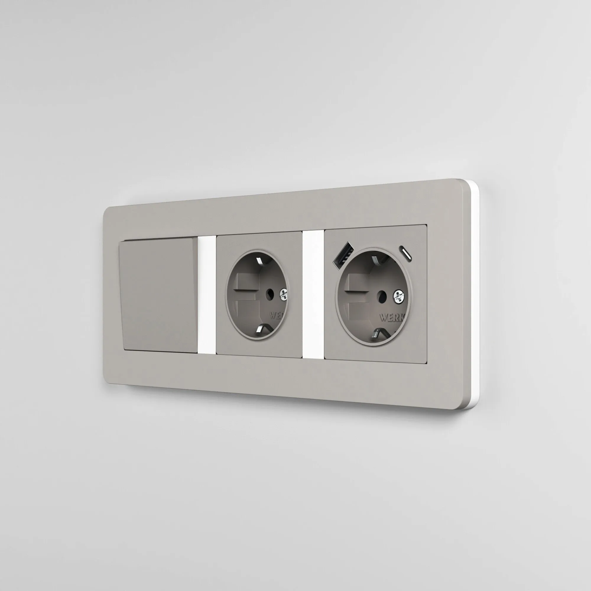 Трехпостовая рамка Split дымчатый/белый soft-touch W0033067 от Werkel — сдержанная элегантность и тактильный комфорт в современном интерьере