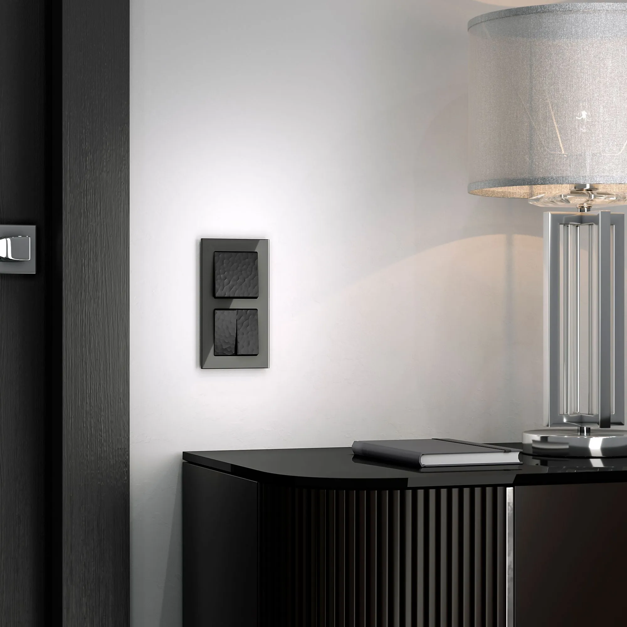 Выключатель двухклавишный с подсветкой Hammer (черный) W1220108