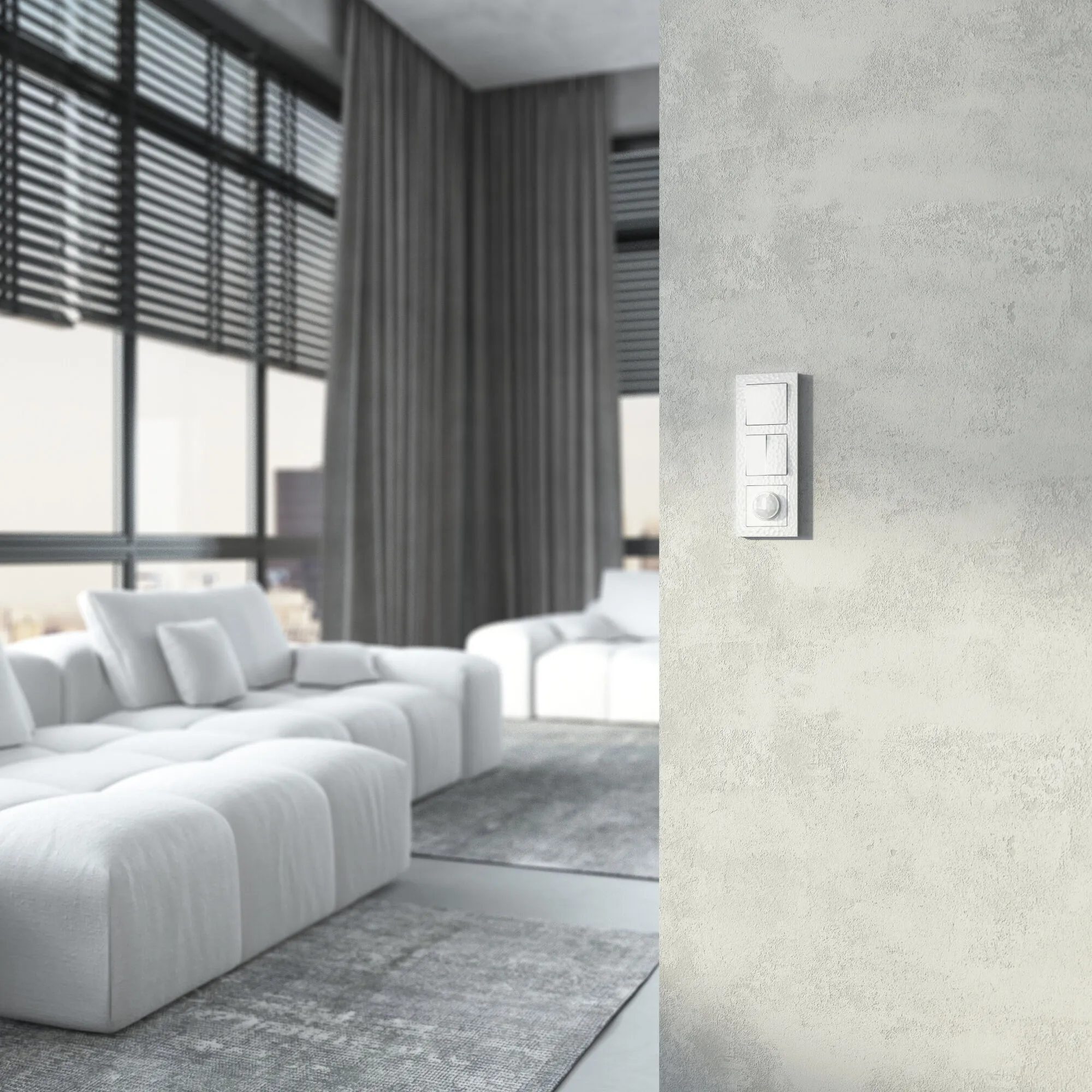 • Современный дизайн: Белый цвет и 3D-фактура придаёт выключателю лёгкую игру теней, которая оживляет поверхность без излишней вычурности.